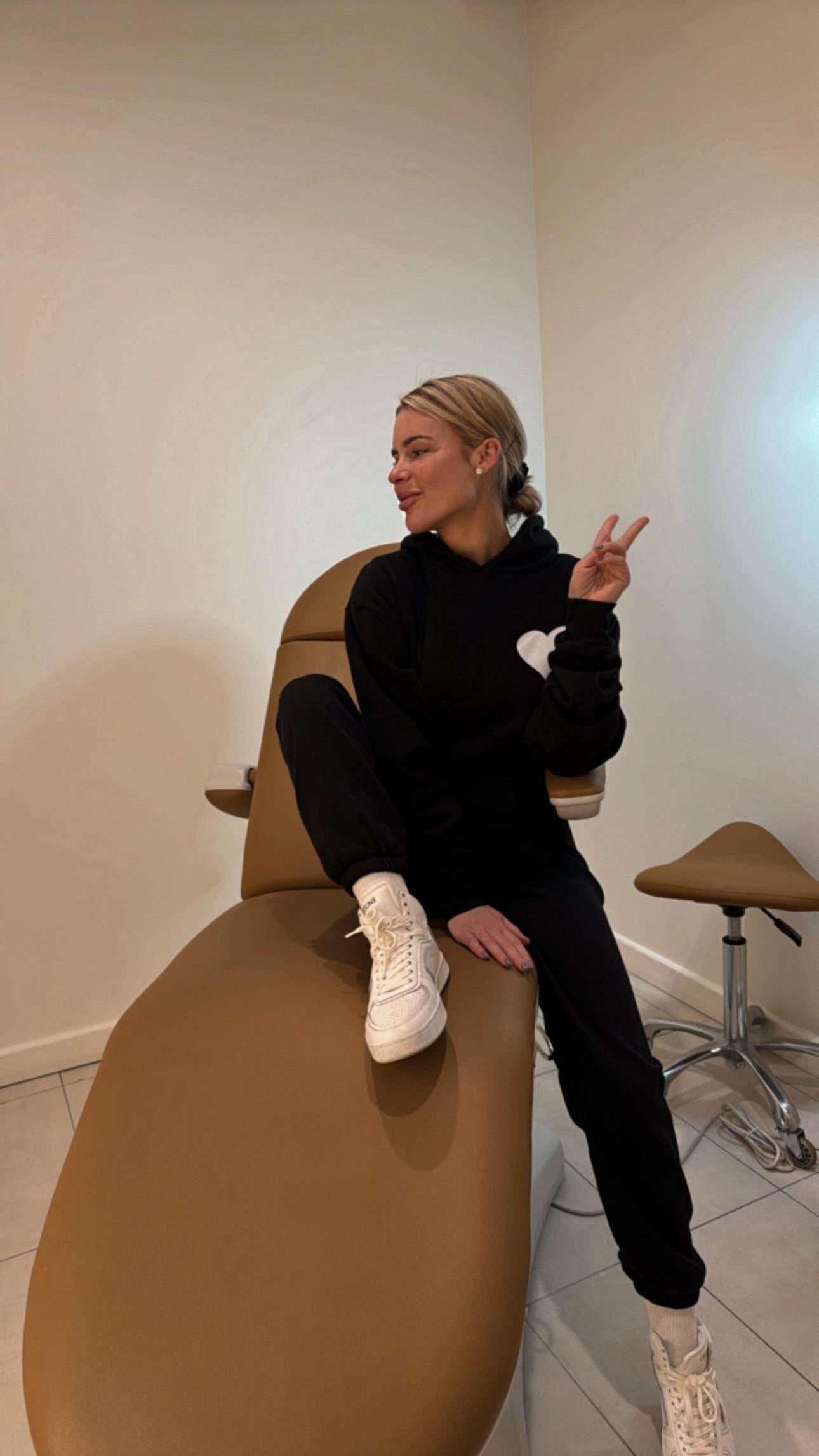 Black sweat set with a bold heart detail. Cozy, cute, and perfect for lounge or errands.